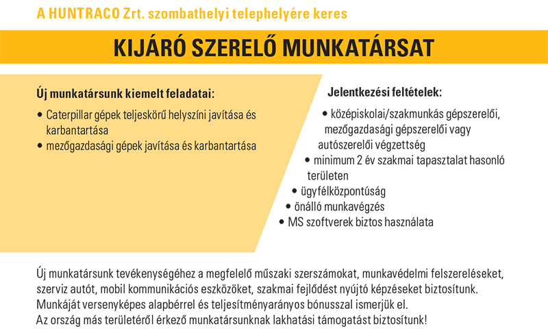 Jelentkezését részletes szakmai önéletrajzzal az allas@huntraco.hu e-mail címre várjuk.